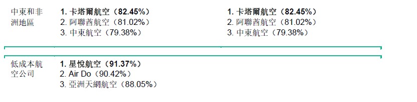 另外,全球最準時的低成本航空公司前三名均為來自日本的航空公司。星悅航空以91.4%航班抵達準點率位列第一,Air Do和亞洲天網航空(Solaseed Air)緊隨其後。