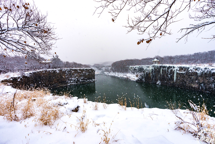 下雪的鏡泊湖、氣氛格外靜謐。(圖片提供/吳榮邦)