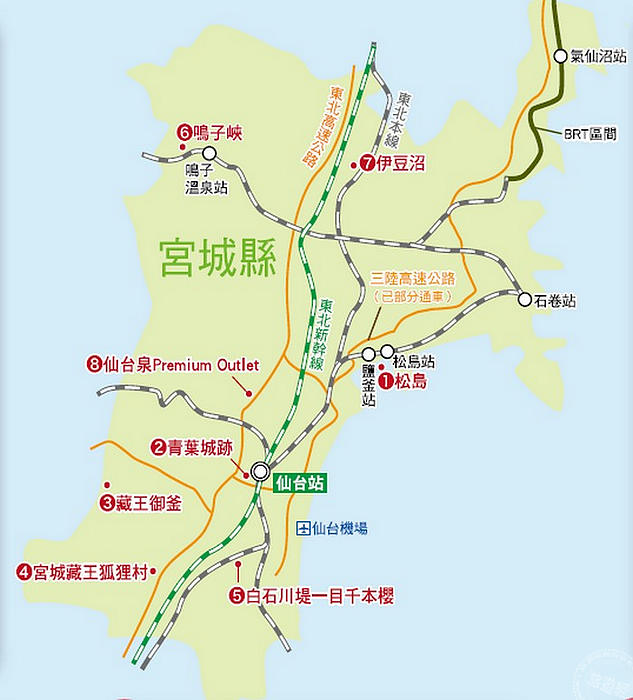 宮城縣擁有東北地區最大的城市「仙台」,還有日本三景之一的松島、雄偉壯觀的藏王等美麗自然景觀,然而宮城縣環山面海風光美麗,素有「食材王國」之稱,盛產美味食材,如仙台的牛舌、氣仙沼的魚翅、松島的牡蠣等等。此外,還有鳴子溫泉鄉等有名的溫泉,吸引著大批的觀光遊客來訪。此篇我們來介紹一下宮城的觀光亮點!