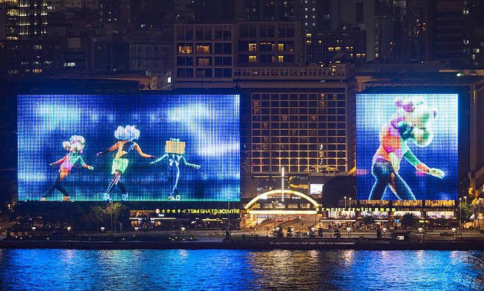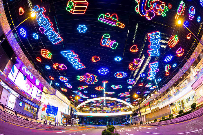 香港尖沙咀東部的建築外牆一向是旅客最愛的聖誕打卡位,今年尖東一帶除了佈置了色彩繽紛的燈海外,尖沙咀中心及帝國中心牆上的多媒體螢幕牆變身成全港最大的跳舞機,只要能夠看到這個巨型燈飾,就能跟隨影像動畫輕鬆動一動,來一個動感的聖誕。