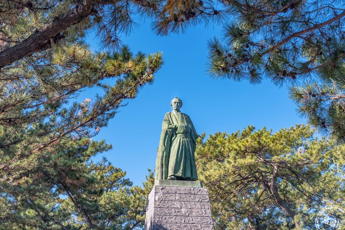 桂濱海灘知名的坂本龍馬銅像。(圖片提供/高知縣)
