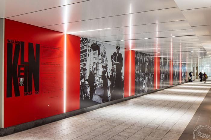 除了舞踏表演,還有街頭主題攝影展《GINZA 1961》,地點就辦在地鐵銀座站與東銀座站之間的地下通道。由於1961年是「舞踏」正開始綻放光芒的時期,攝影展挑選了10張William Klein當時在銀座拍攝的作品,放大後覆蓋整個地下通道的牆壁,相當有氣勢。