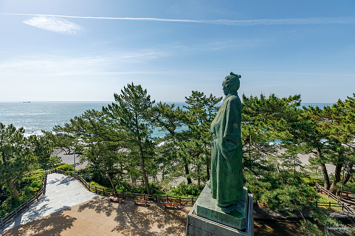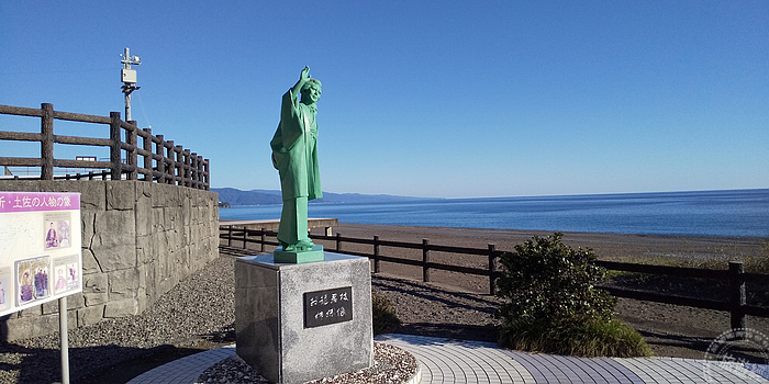 英姿煥發的坂本龍馬銅像,興建地址:高知県高知市浦戸9