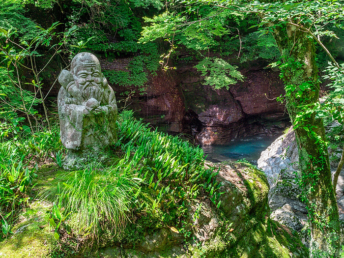 中津溪谷步道上的幸運七福神,為仁淀藍增添儀式感。地址:高知県吾川郡仁淀川町名野川