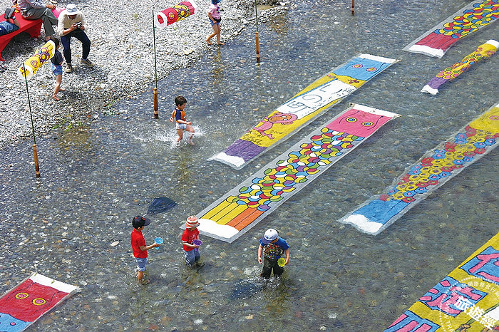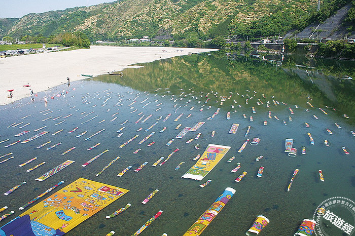 高知縣的伊野町因清流仁淀川流經,盛產和紙主原料「楮樹」,自古便是著名和紙產地,「土佐和紙」亦為日本三大和紙之一。伊野町於每年五月初(黃金週期間)舉辦「仁淀川紙鯉祭」,以江戶時代傳承至今的技術手工製作而成的和紙「不織布」製作出200隻大大小小多彩繽紛的鯉魚旗,將其放流在「奇蹟清流―仁淀川」下游的「波川公園」清澈河水中。鯉魚旗在河水中自在悠遊,可愛模樣十分療癒,場景也壯觀非凡!