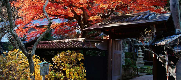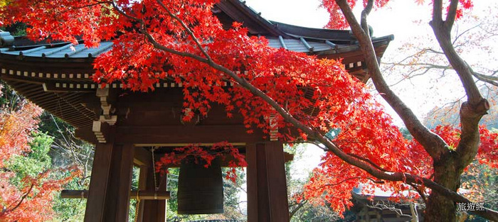海藏寺距離鐮倉站步行約20分鐘,門前路上有一片楓紅隧道,海藏寺不大卻相當精緻,可說是處處有「楓」景,院內鐘樓與壯觀的楓樹比肩而立,與海藏寺的象徵「油紙傘」搭配起來,十足展現古意風情。