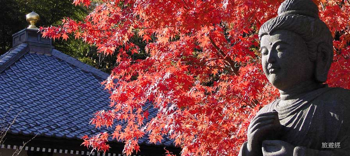 淨智寺為鐮倉五山第四位,寺廟中位於山門和石階附近的楓槭特別紅艷耀眼,通往源氏山的徒步道上,滿山燦紅盡寫著靜謐氛圍。