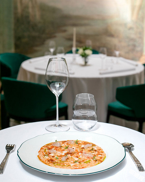而位在威尼斯的雲水之都,過去曾在2017年被評選為「全球最佳新進酒店」,飯店呈現威尼斯當代歷史風華,18間客房名稱也皆與威尼斯相關的人事物作為結合,部分房型可從房內直接欣賞威尼斯大運河景緻。飯店內的GLAM餐廳,則是由主廚Enrico Bartolini掌管,他被譽為義大利最年輕米其林二星主廚,29 歲那年在義大利的Le Robinie餐廳,獲得了他人生中米其林第一顆星,在33歲時摘下第二顆星,而今年再度蟬聯二星餐廳。主廚在3歲時就已經對料理充滿極大熱情,曾經學校老師在上課時示範煮焦糖,當時他對於焦糖加熱後所產生的變化印象深刻、也覺得非常神奇,回家後便親自煮了焦糖給他的母親品嚐,這也讓當時才3歲的他,第一次燃起了想邁向廚師之路的心。