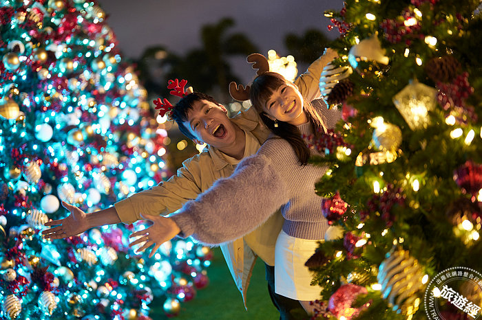 園區中多棵聖誕樹掛滿璀璨配飾,照耀每個角落