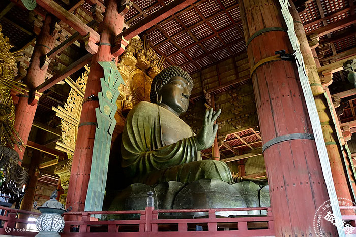 供奉著世界最大鍍金青銅佛像的東大寺,雄偉的佛像高達15公尺左右