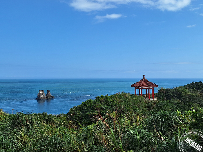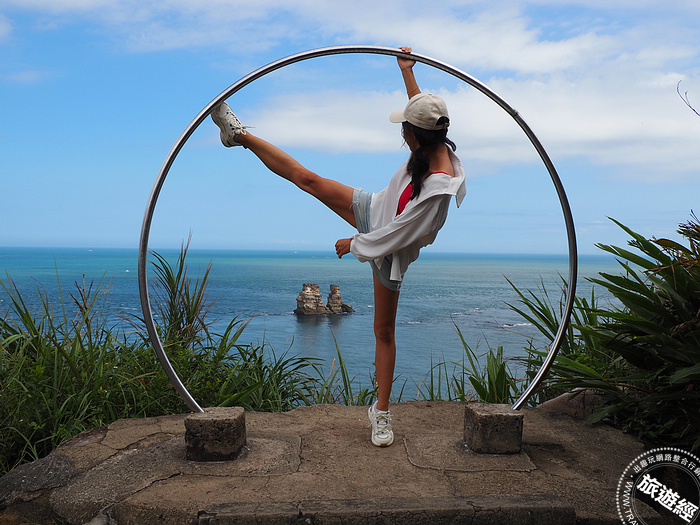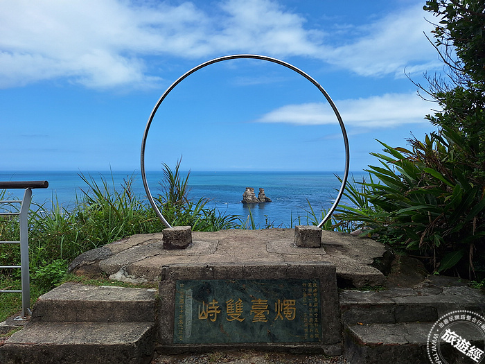 而途中還會遇到「彌勒佛-阿福」造型可愛且笑瞇瞇,往旁邊階梯往上走即是一條「好運道」,往主要步道往上走,登高望遠,能看到清澈海湧岸,完全不輸關島及澳洲等海水景色,而欲感受海中矗立的「夫妻石」,看到貌似兩座燭臺的「燭台雙嶼」,則建議至觀景平台,從鋼製圓形框景往外拍,燭台雙嶼這一對海蝕石柱宛如一對攜手對望的夫妻,也很適合情侶一起來留念。