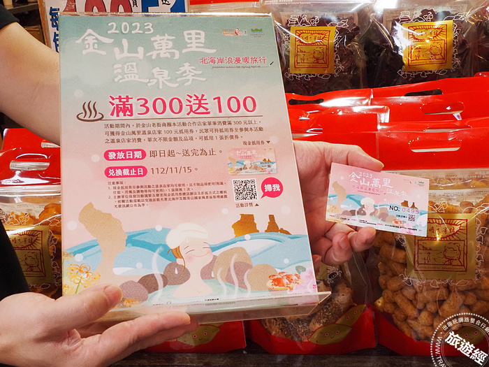 金山萬里溫泉是北海岸一處依山傍海的瑰地,當地可說是自然資源相當豐富,北觀處在溫泉季之際,結合了溫泉及美食,於即日起至11 月 15 日止,推出「2023金山萬里溫泉季」活動。其一、於「金山老街商圈」合作店家單筆消費滿300元以上,可獲得「金山萬里溫泉店家」100元抵用券,民眾可持抵用券至參與活動之溫泉店家消費,單次不限金額及品項,可抵用1張折價券;其二、於活動配合的「溫泉店家」,單筆消費達300 元以上,憑發票或收據(收據需蓋有店家大小章)至活動表單登錄資料,就有機會抽中GOGORO電動機車、健身環大冒險等大獎。