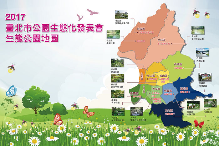 臺灣的環保越來越多人看重,也越來越多人注意到環境生態,現在在台北繁華的都市生活中,不難看到在屋簷下燕子築巢的親子畫面,都市三俠「白頭翁」、「綠繡眼」和「麻雀」也穿梭其中,當然偶爾也會有大小鷺絲、朱頸斑鳩或黑冠麻鷺的驚鴻一瞥。在重視環境的現在,臺北市政府與公民團體合作,在臺北市公園擇選12處列為生態公園,讓臺北市邁向宜居、生態城市的方向前進。