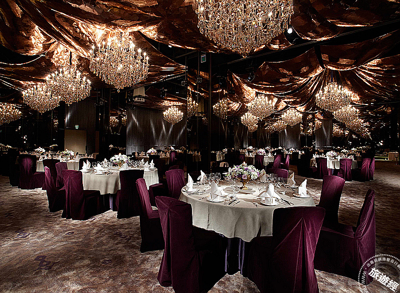 宛如巴黎歌劇院般的君品酒店「亮」廳有5米挑高大廳,天花板以宛若歌劇院布幕垂墜的金屬材質打造,配上16盞水晶燈映出古典法國情調。雲品國際提供