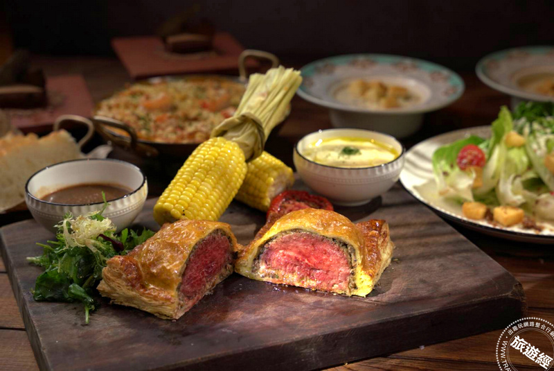 君品酒店「茶苑精選牛排雙人套餐券」呈現經典「老靈魂威靈頓牛排」,薄酥派皮與鮮嫩多汁的菲力,堪稱經典中的經典。_雲朗觀光提供