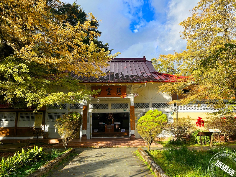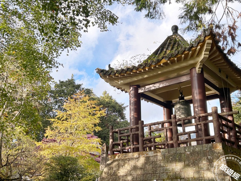 歲末年終,阿里山慈雲寺銀杏與一旁的鐘樓、青楓,是很遊客喜愛拍照的景點。照片出處 阿里山賓館