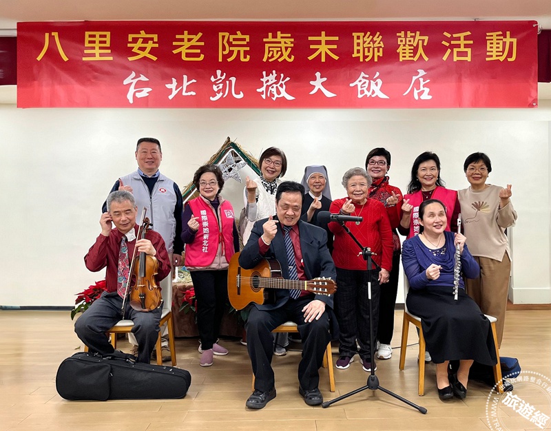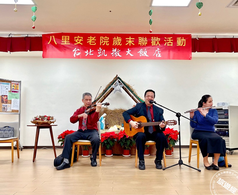 「啄木鳥樂團」每年歲末皆隨台北凱撒大飯店前往八里安老院,為長者帶來多首精彩歌曲演出,以音樂拉近彼此距離,現場熱絡而愉悅。/台北凱撒大飯店提供