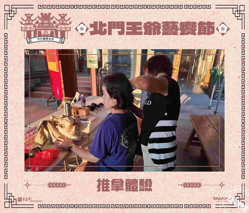 雲管處表示,透過「藝術介入宗教空間」的創新形式,不僅能展現北門深厚的文化能量,也吸引遊客在冬季走入社區宮廟。除了主舞台的感官震撼,活動當天更強調親子共融,現場規劃了溫馨的「義相推拿體驗」與趣味「親子手作 DIY」,讓長輩放鬆身心、孩子動手創作,實現全齡共享的溫馨時刻。為迎接盛會,興安宮廟方與在地居民也全力動員參與籌備,展現北門王爺信仰中最動人的人情味。