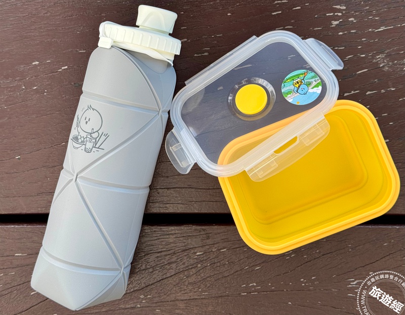 (上下圖)風城印記數位集章活動,掃碼就能累積旅遊足跡,兌換限量好禮,不同兌換地點禮物也不同,例如青草湖是環保野餐組。(攝影/曹憶雯)