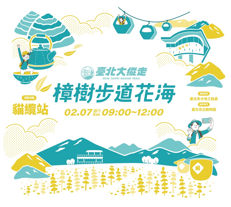 位於臺北大縱走第七段樟樹步道的魯冰花海已含苞待放,彷彿像金色搖鈴,呼喚民眾新年到訪。而臺北市政府工務局大地工程處,在花期之際,於2月7日(六)上午9點至12點舉辦「樟樹步道花海起跑活動」,規劃「山林炭語」手作DIY、「聽・見自然」戶外音樂會及「微觀探險」闖關遊戲等一系列活動,邀請喜愛戶外健行的縱友們於春節前夕上山賞花,感受貓空茶鄉的無窮魅力。