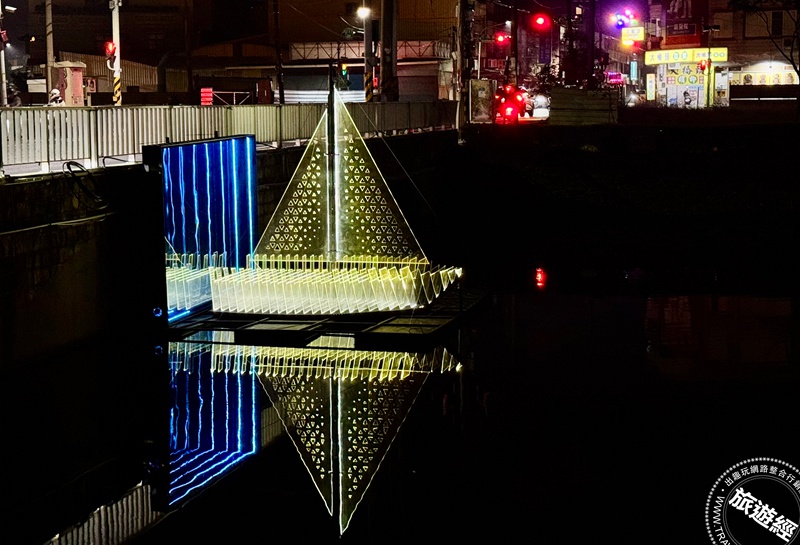 都市藝術工作室創作的《浮光流雲》,倒映粼粼波光閃耀夢幻美感。(圖片提供/台南市政府)