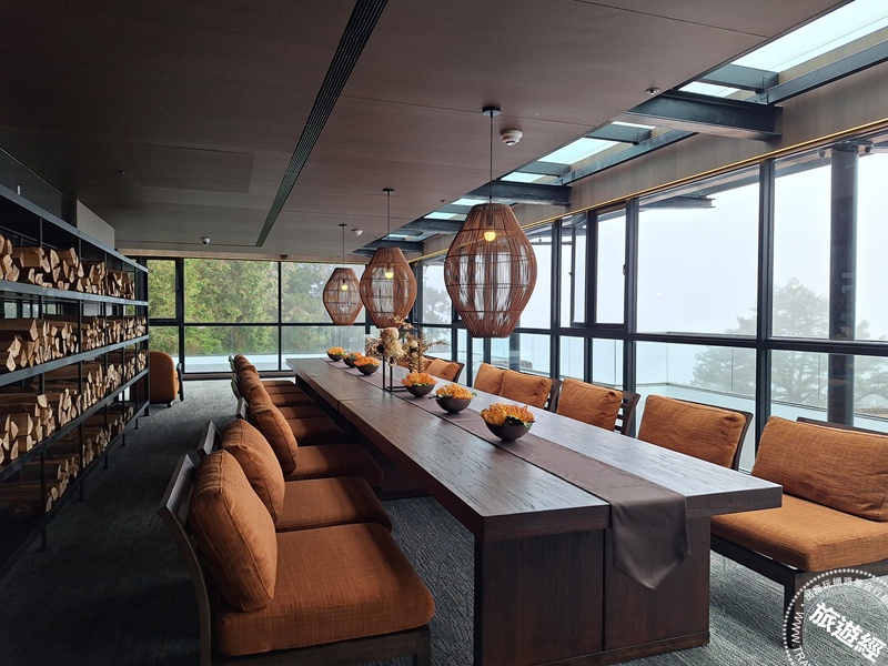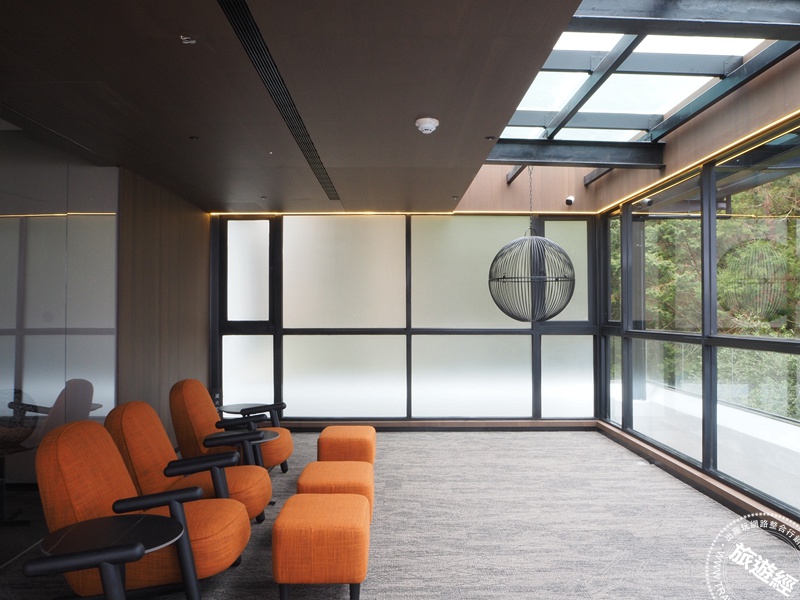 雲端之森為概念發想的全新客房,蒐羅高山森林、山嵐雲海,雲霧晨曦,總經理王覺非表示,看好私人包團、精緻、深度體驗的遊程,除了全打打造頂級客房,精心規劃專屬、私人聚會交誼廳,以大片落地窗設計,開闊無死角的視野框住一整片壯麗的山巒美景、雲瀑流雲,遠眺塔山步道眠月線遺世獨立美感。特別一提的是──此樓專用的「交誼廳」,檜林香撲鼻,而沙發設計揉和木質與溫柔暖色系的愛馬仕橘呈現經典時尚的風格,完美的住進清晨和日落,隨著夕陽金黃色光芒,山色逐漸沉靜,靜享山色變化萬千又不喧囂的悠閒,除了供此樓房客Happy Hour使用外,也成為一處外包空間。