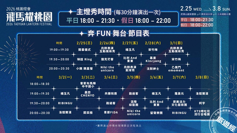 相關資訊可至「2026桃園燈會」官網 (https://2026taoyuanlanternfestival.tycg.tw/) 查詢!