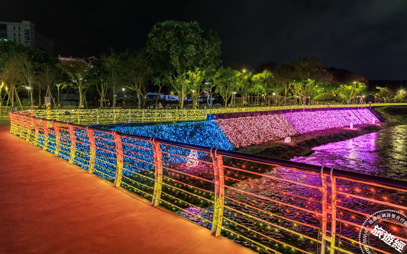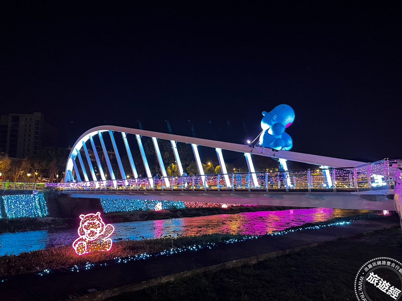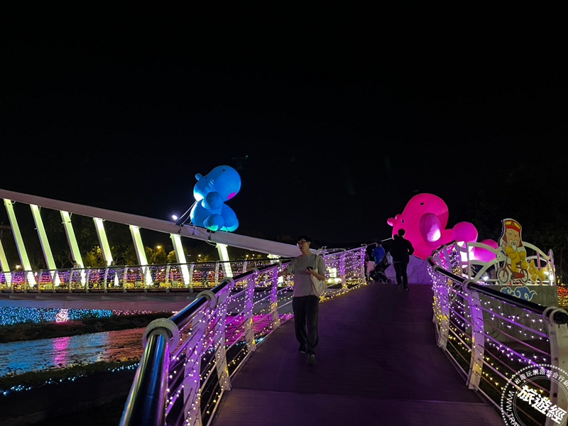 離開科技感,沿著南崁溪水岸漫步,空氣中瀰漫著花草芬芳與繚繞水霧。首迎接遊客的是會動的白鷺鷥、荷花及鴨子等傳統花燈,在自然旋律中閃動。隨後登場的巨型童趣搖搖馬,瞬間喚醒童年木馬回憶;緊接著進入由光束折射的神祕光廊,讓人彷彿闖入森林仙境。漫步河岸時,還能巧遇成群調皮趴在河畔的可愛河馬燈組,在溪畔傳遞溫馨祝福。