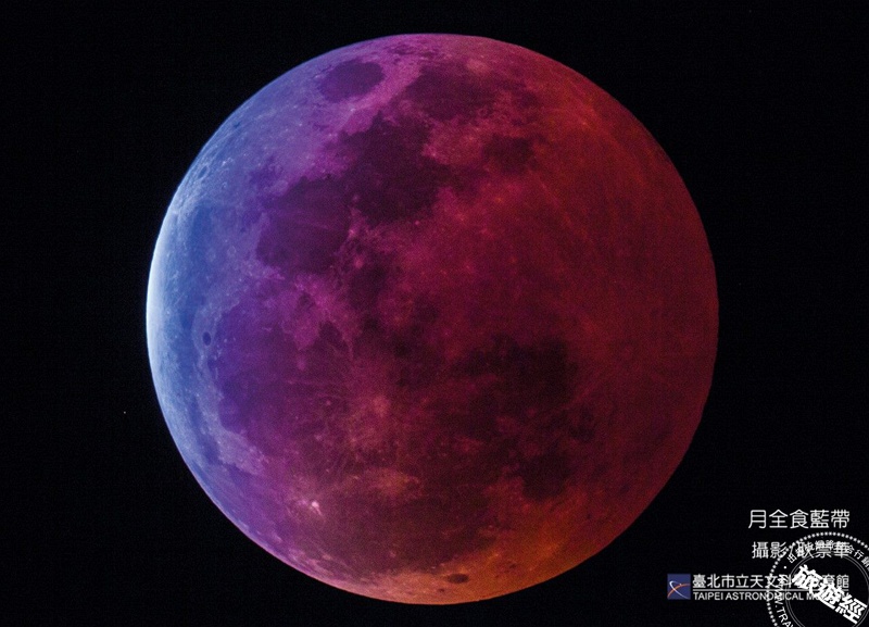 月球於17:50升起時進入地球本影而開始缺角,圖為月全良藍帶,耿崇華攝(圖源來自:臺北市天文館官網)