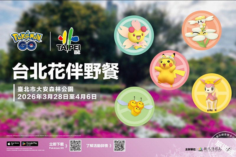 台北觀傳局表示,今年野餐活動最大亮點之一是與《Pokémon GO》攜手合作,自3月28日上午10時至4月6日下午6時,民眾可於大安森林公園一邊賞花,一邊體驗《Pokémon GO》花季限定遊戲內容,只要打開手機即可捕捉寶可夢,享受春日戶外遊戲樂趣。活動期間每日上午10時至下午6時,園區內也將展出大型寶可夢氣球,成為白天時段的拍照亮點。