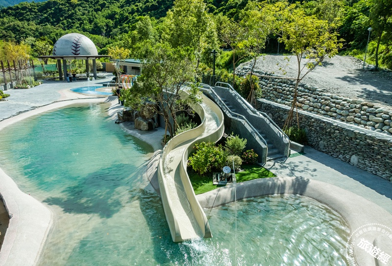 台東紅葉谷綠能溫泉園區推出兒童節限定贈禮,4月1日至4月6日期間,每日購票入園前30組遊客可獲得限量「甜香爆米花」乙份,圖為園區中滑水道。雲朗觀光提供