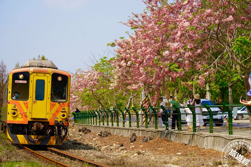最吸引人之處在於它能同時捕捉到「粉紅花海」與「集集線小火車」同框時美麗的畫面,被譽為「二水版櫻花鐵道」