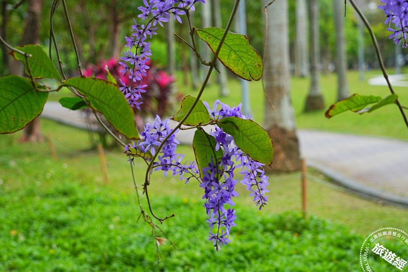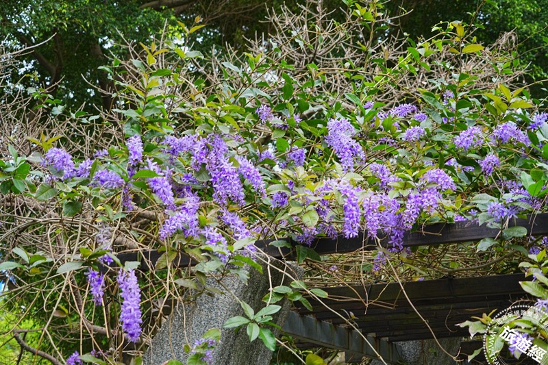 臺北杜鵑花季進入倒數,欲賞不同色彩杜鵑、繡球花等花卉的民眾,請把握最後時機至大安森林公園賞花「趣」,許多在公園會在園區五號公廁南側,發現30公尺的棚架上,長了一串串紫色花序,有些人乍看之下可能會誤認為是「紫藤」,事實上並不然,只要仔細一看,垂掛的花卉為「錫葉藤」,目前已進入盛花期,也讓這個棚架形成層次豐富的立體花廊景觀,若不知「錫葉藤」的真實面貌,不然於清明及兒童節連假前往,至大安森林公園踏青,而攝影愛好者也可藉機捕捉春季美麗的景致。