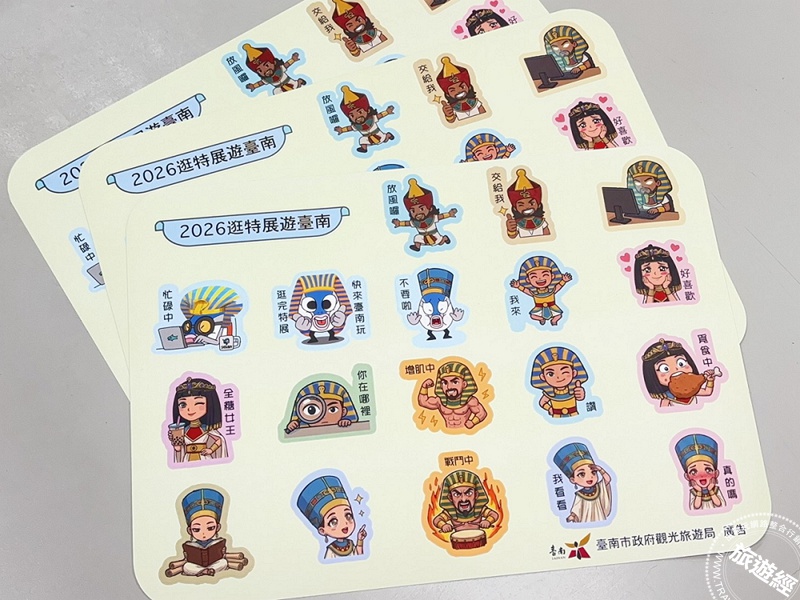 臺南市政府府觀旅局特別把握此次帶動觀光旅遊的契機,除拍攝 KUSO 宣傳影片外,也將於兒童清明連假期間推出「看展兌換限量Q版法老貼紙」活動,凡於連假期間(4/3~6)至高鐵臺南站、臺南火車站及新營火車站等3處旅遊服務中心,在這3 處重要交通節點限量發送,每處各200份,每張票根(或購票憑證)可兌換1份,每份貼紙有18款不同的Q版法老,鼓勵民眾多加利用高鐵、臺鐵等大眾運輸工具前往看展,不僅交通更為便利,也能從容於看展後再串聯臺南各大景點旅遊。