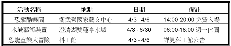 位於衛武營國家藝術文化中心的「恐龍酷樂園」,於4月3日至4月6日每日14:00至20:00免費開放,活動中6大必玩亮點,兼具教育意義與娛樂性!