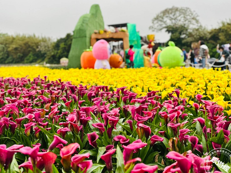 七、桃園彩芋:「2026桃園彩色海芋季」在大園溪海休閒農業區登場,相關活動至4月12日止,藝術裝置、彩色海芋、小蒼蘭、百合及各式草花,總計超過20萬株花卉,並設置約6,000平方公尺、12萬株波斯菊花海,展現花海繽紛。