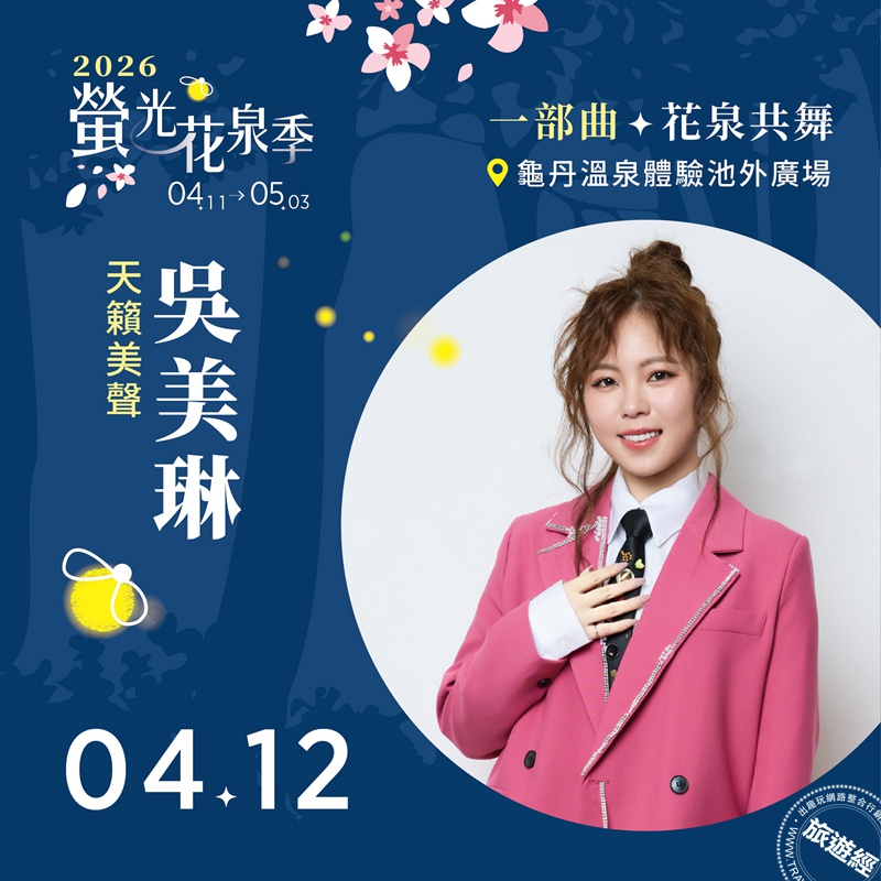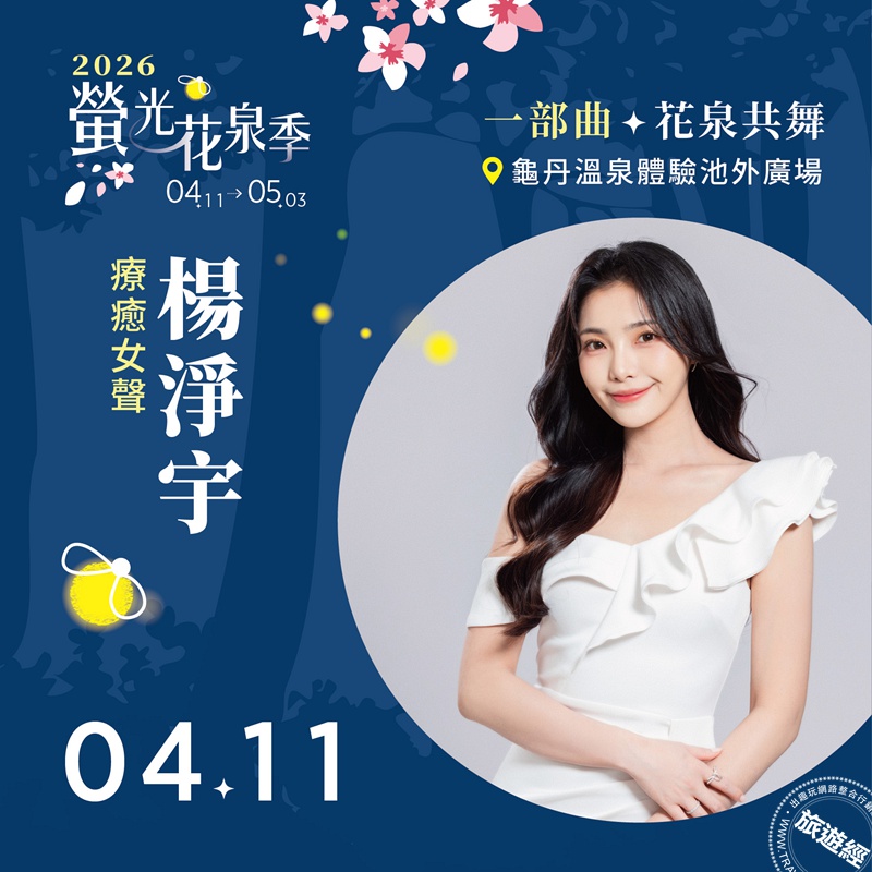 臺南春季觀光盛事「2026螢光花泉季」將正式揭幕!「螢光花泉季」整合自然景觀、生態資源與在地產業,展現楠西山城獨有的旅遊魅力,首波登場為一部曲「花泉共舞」,將於4月11日至4月12日,一連二天上午10時至下午4時,在楠西區龜丹溫泉體驗池戶外廣場熱鬧展開。活動結合溫泉體驗、音樂演出、特色市集,以及超療癒的「卡比胖拉」氣偶與紙雕裝置,打造春日最悠閒愜意的山城慶典。