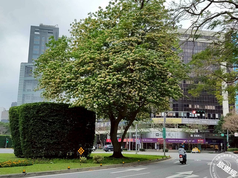 目前台北市仁愛圓環及溫州街,加羅林魚木盛開中,宛若春末變裝秀,為北市繁忙街頭增添優雅風情,想要賞花的民眾千萬不要錯過限定美景!
