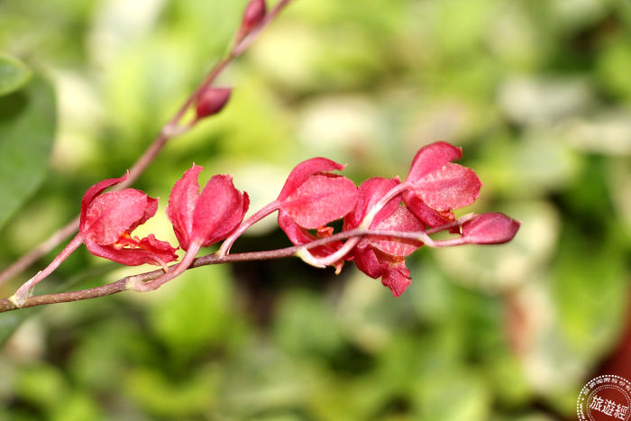 花朵紅色的「紅瓢蟲」,遠看就像許多可愛的小瓢蟲停在花梗上