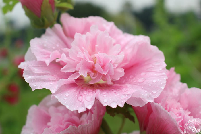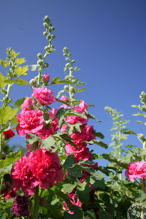 蜀葵原產於四川,故名蜀葵,又稱「端午錦」或「一丈紅」,因花期長,盛開時長長花莖上幾乎開滿花,目前花博種植包含單瓣及複瓣之品種,有桃紅、粉紅、黃、深紫等不同顏色相當繽紛。因為蜀葵對土壤的要求不高,栽培容易成活,且需要種植在陽光充足的地方,所以合適成片種植在開闊的公園內形成一片花廊道,營造攝影取景與花爭豔的好地方!