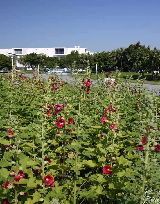 繼台南學甲、彰化員林「遊」蜀葵花海後,臺北現在也可以邀大家來賞一丈紅,蜀葵花型因為外型相當大方豔美,加上瘦高的「身材」,與龍舌蘭花來說,堪稱花界的舞台型模特兒,近年來受到相當矚目。春天繁花盛開爭豔,其中若要欣賞擁有宮廷氣質的蜀葵可至「花博」公園,花博現在百花盛開,自圓山捷運站下車後,穿越寬闊地景花海區草坪緩坡後,沿著蜿蜒路徑來到饒富日式風味的名人館前,眼前開展現著數大的蜀葵花海美景,繽紛交錯的大朵蜀葵霸氣展現貴族的氣派與豪華。