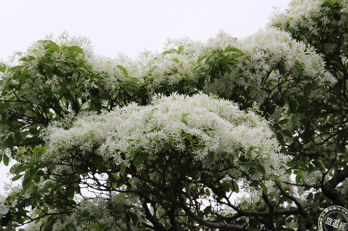 流蘇枝頭披上雪白薄紗