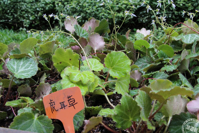 「虎耳草」,植株密生細毛,具有匍匐莖,葉子形狀像老虎的耳形而得