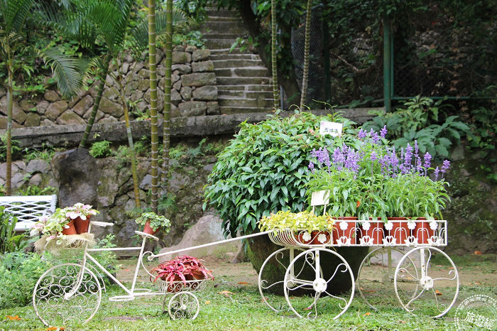 利用歐式腳踏車搭配香草植物營造浪漫氛圍