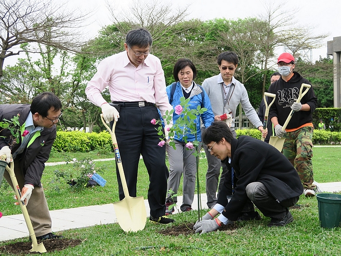柯文哲市長親自於臺北玫瑰園種植玫瑰花