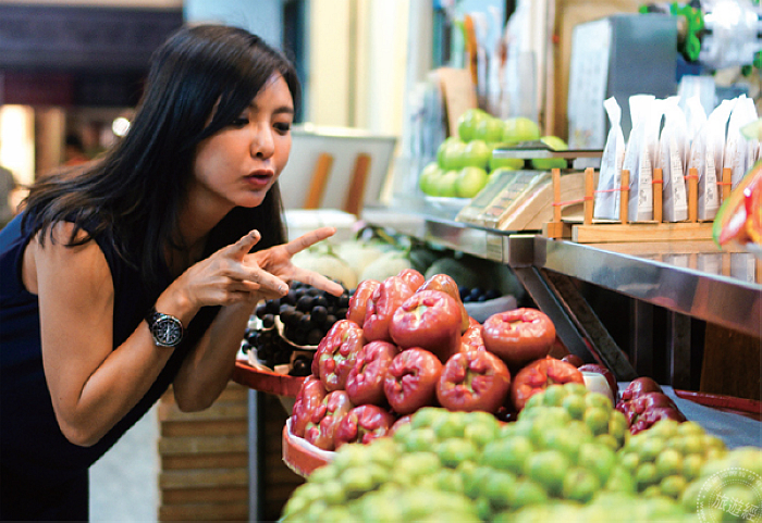 ↑ 女神主播/藝人芳瑜開心與進口水果合影。