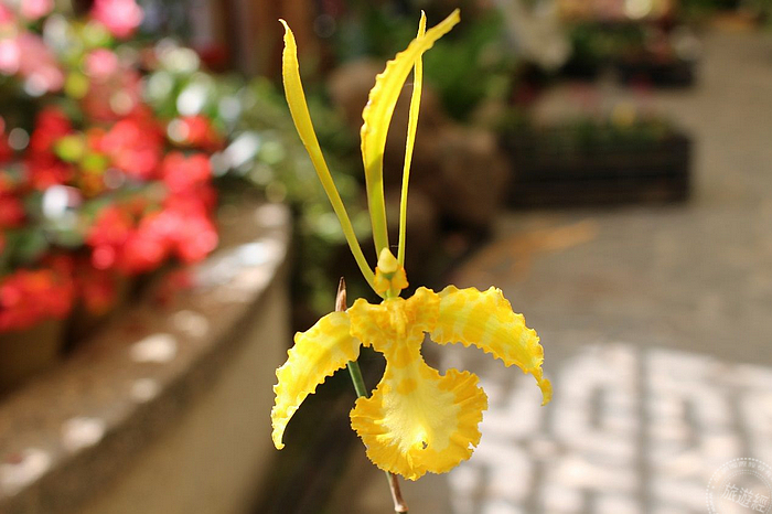 文心蘭亦叫做「跳舞蘭」,雖是常見的蘭花花卉,但或許你只見過黃色或黃色花瓣咖啡色心的文心蘭,其實文心蘭種類、花色繁多,就以顏色來說,除了黃色以外也有紅白色及紫色,另外還有一種文心蘭竟然也有巧克力香!想一次目睹多種文心蘭嗎?台北市士林官邸,自明(5月1日)起至5月21日止,在新蘭亭推出「士林官邸蘭花展」,此次堪稱文心蘭品種大蒐羅,展期當中,將展出超過30品種、500餘株不同花色、斑點、型態等各式各樣的文心蘭。