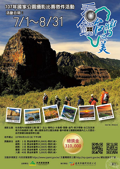 臺灣坐擁大自然美景,其生態豐富更讓這一片天地充滿生命力,由於相機的數位化,造就了更多攝影愛好者,為了讓民眾看見臺灣之美,內政部營建署以「臺灣國家公園」為主題,特舉辦「107年國家公園攝影比賽徵件活動」,提高民眾對國家公園的認識來領略「臺灣國家公園之美」,相關攝影比賽已於日前(7/1)登場,為期二個月的攝影比賽徵件將至8月31日下午6時止!