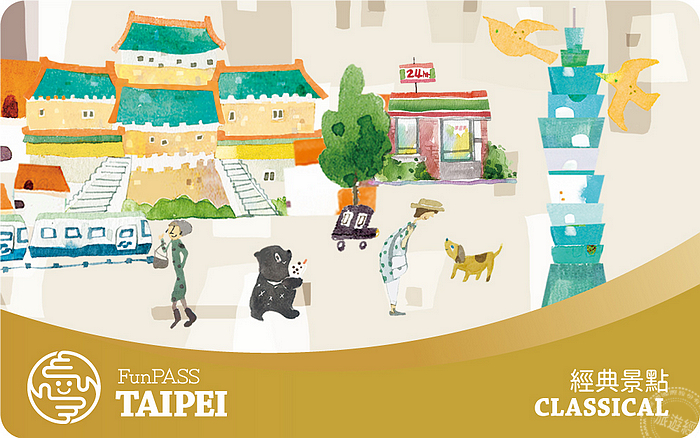 「經典景點卡」針對喜歡自在慢行的旅客所設計,包含了來台必遊的兩大經典景點門票—台北101觀景台及故宮門票各一張,並且加贈具有台北城市意象的特製版悠遊卡,也就是能當悠遊卡不限期使用,霧金卡面上將台北101、故宮與暢飲珍珠奶茶的台灣黑熊躍然呈現,除了方便觀光客儲值搭乘交通工具或是購物之外,也能具有收藏價值。此外,憑卡還可享有「北北基好玩卡」近兩百家的優惠店家優惠。