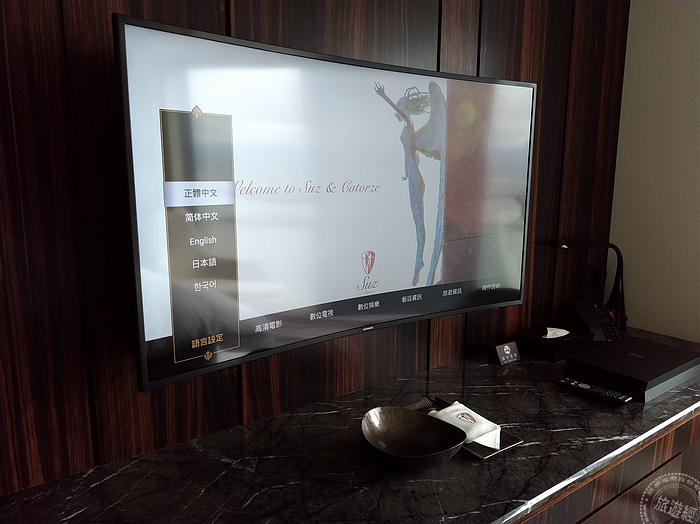 除了「河悠宿及河極宿」房型外,每間客房都配置Samusung49吋曲面電視(攝影:洪書瑱)